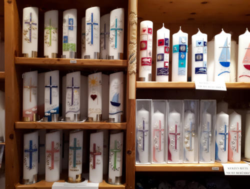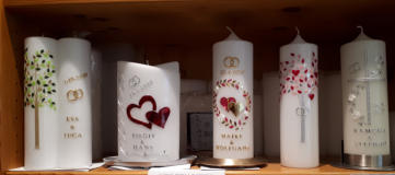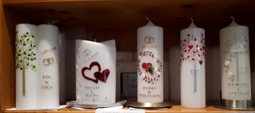 Herzlich Willkommen, treten Sie ein!Bei uns finden Sie eine große Auswahl an Kerzen für jeden Anlass. Wir nehmen uns Zeit für Sie und beraten Sie gerne bei der Planung und Gestaltung Ihrer Wunschkerzen.Wenn Sie Ihre Kerze gerne selbst gestalten wollen finden Sie bei uns eine umfangreiche Auswahl an Verziermaterial. Selbverständlich unterstützen wir Sie und haben viele praktische und hilfreiche Tipps für Sie bereit.