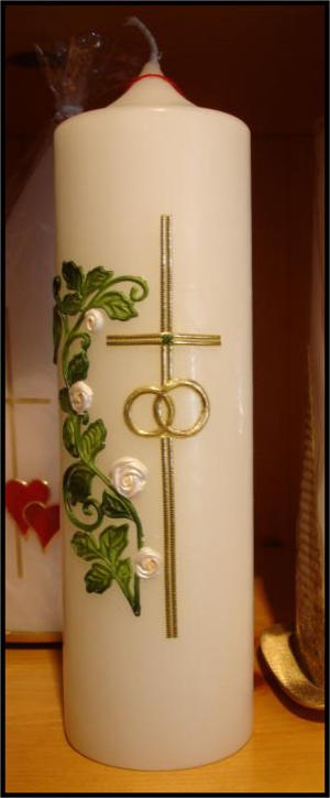 Sie suchen nach einer besonderen Hochzeitskerze? Wir haben ständig eine große Auswahl an fertigen Kerzen vorrätig. Da wir die Kerzen in unserer Werkstatt selbt gestalten, können wir fast jeden Wunsch erfüllen. Bei uns stimmen Preis und Qualität. Natürlich beschriften wir die Kerzen mit Namen und Datum der Hochzeit. Überzeugen Sie sich selbst und besuchen Sie unsere Ausstellungsräume. Bei uns gibt es keine Parkprobleme. Sie parken direkt vor unserem Laden und suchen sich in aller Ruhe Ihre Wunschkerze aus.