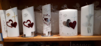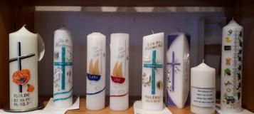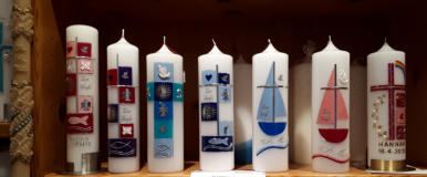 Herzlich Willkommen, treten Sie ein!Bei uns finden Sie eine große Auswahl an Kerzen für jeden Anlass. Wir nehmen uns Zeit für Sie und beraten Sie gerne bei der Planung und Gestaltung Ihrer Wunschkerzen.Wenn Sie Ihre Kerze gerne selbst gestalten wollen finden Sie bei uns eine umfangreiche Auswahl an Verziermaterial. Selbverständlich unterstützen wir Sie und haben viele praktische und hilfreiche Tipps für Sie bereit.
